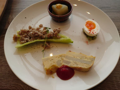地元坂井市の食材を使った前菜4種盛りから始まり、